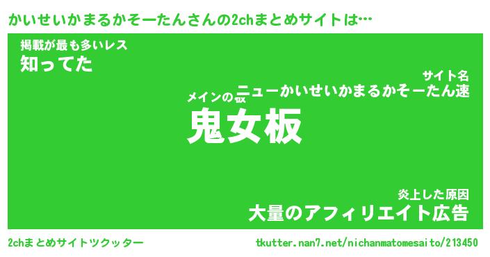 | 胡散臭い通販商品みたいなあだ名 | 『モテモテ間違いなし霊験あらたかなお札…その名も「かいせいかまるかそーたん」』 |