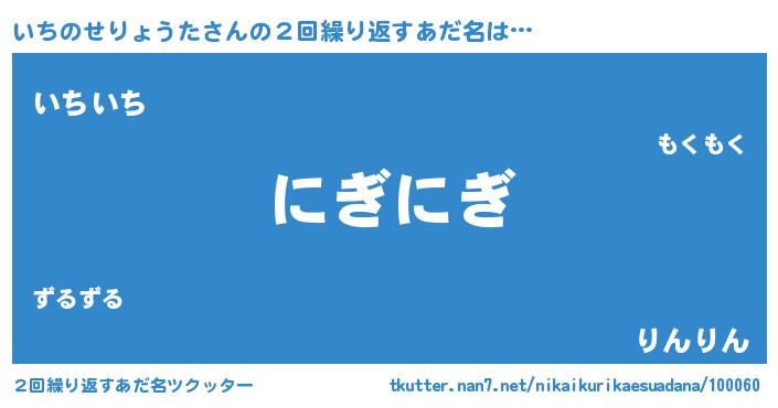 | 欧米人風あだ名 | 『ウサインいちのせりょうた』 |