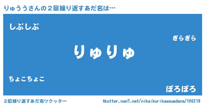 | 意味不明あだ名 | 『ペロリンりゅうう』『永久保存りゅうう』 |