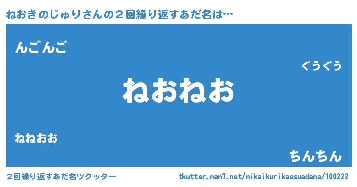 | ヘコむあだ名 | 『ねおふぇ~』『ねおきのじゅり(遠い目)』 |