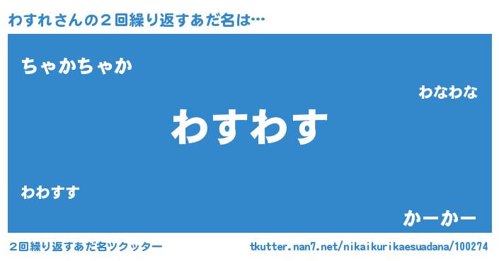 | ヘコむあだ名 | 『わすもー』『わすれ(小並感)』 |