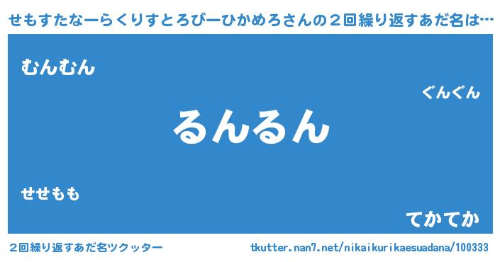 | 欧米人風あだ名 | 『トリンドルせもすたなーらくりすとろびーひかめろ』 |