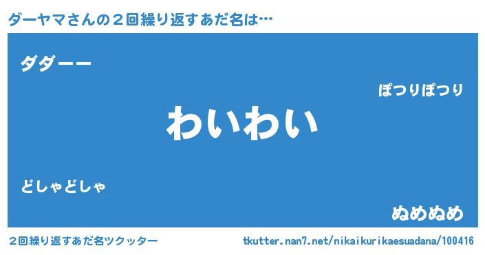 | 男性向けラノベタイトル風あだ名 | 『転生したらダーヤマだった件』 |