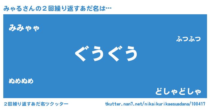| 意味不明あだ名 | 『永久保存みゃる』『みゃるフォーエバー』 |