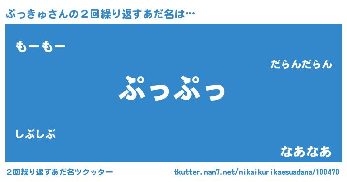 | 意味不明あだ名 | 『ペロリンぷっきゅ』『自称ぷっきゅ』 |