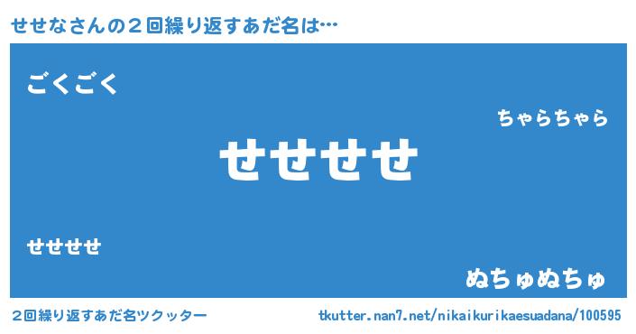 | ポケモン風あだ名 | 『セセナダネ』『ゼニセセ』 |