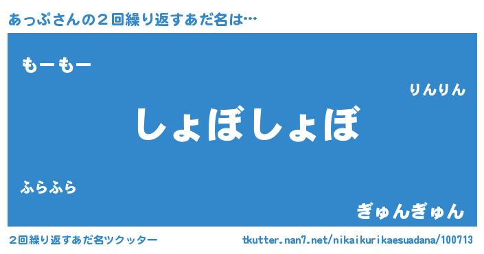 | 意味不明あだ名 | 『住所不定無職あっぷ(3歳)』『自称あっぷ』 |