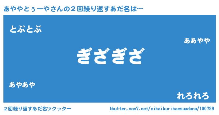 | 女子向けラノベタイトル風あだ名 | 『異世界で失敗しない100のあややとぅーや』 |