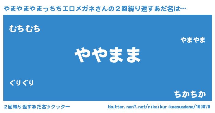 | 意味不明あだ名 | 『やまやまやまっちちエロメガネフォーエバー』 |