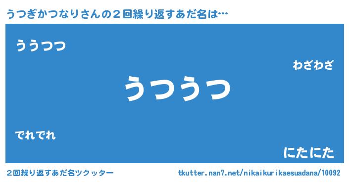| 男性向けラノベタイトル風あだ名 | 『うつぎかつなりの憂鬱』 |