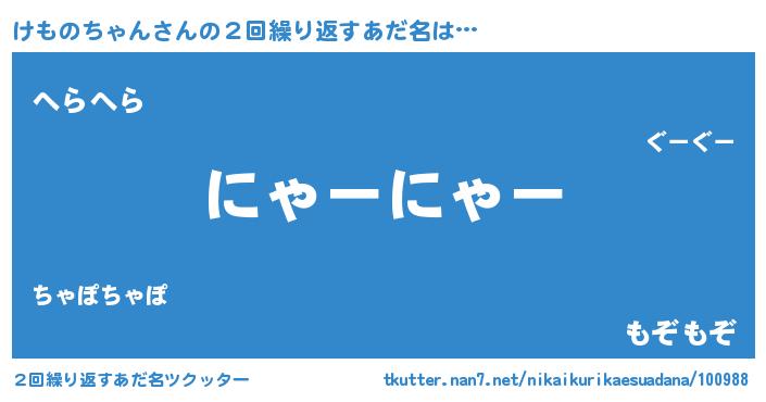 | 意味不明あだ名 | 『とにかく怪しいけものちゃん』 |