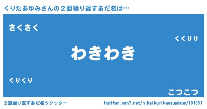 | ヘコむあだ名 | 『くりたあゆみ(笑)』『つくし』 |