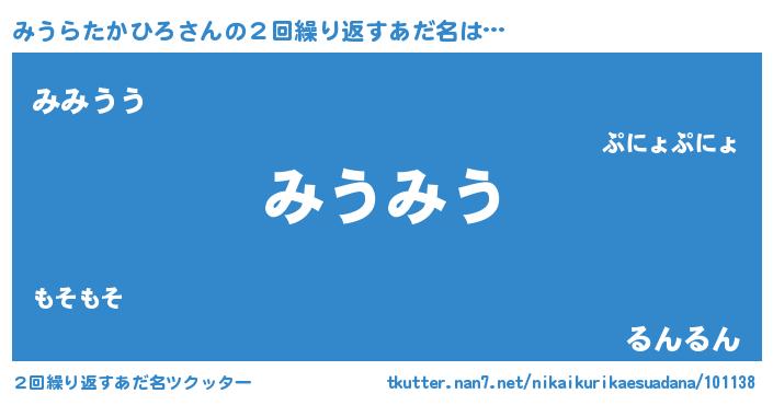 | 男性向けラノベタイトル風あだ名 | 『みうらたかひろに滅ぼされるだけの簡単なお仕事です』 |