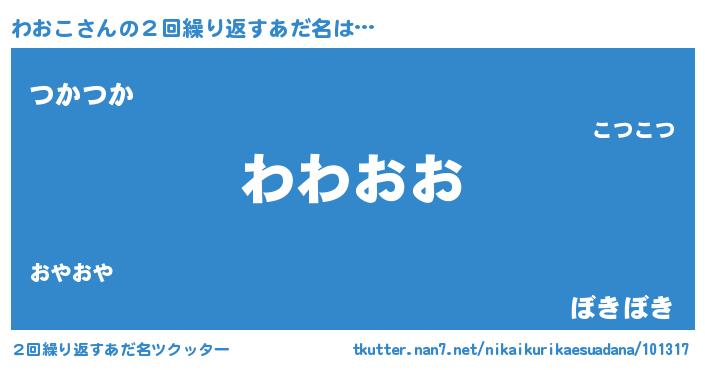 | ヒーロー風カッコイイあだ名 | 『ウルトラわおこマン』『愛の使者わおこ』 |