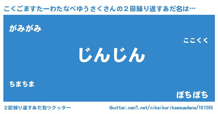 | 意味不明あだ名 | 『住所不定無職こくごますたーわたなべゆうさく(91歳)』 |