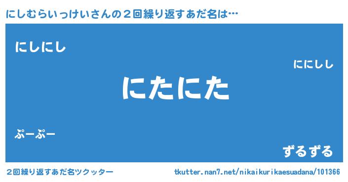 | ポケモン風あだ名 | 『ヒニシムライッケイ』『ニシチュウ』 |