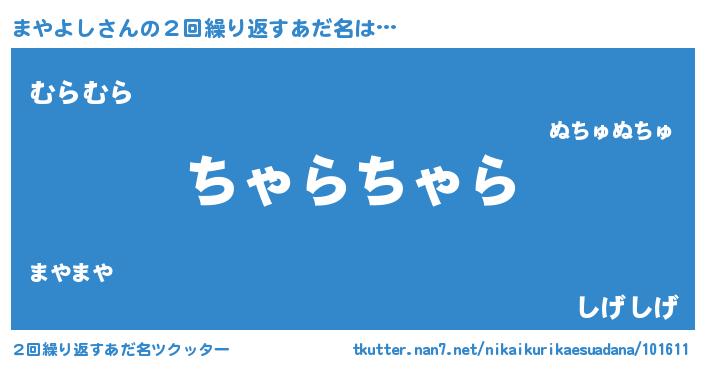 | 意味不明あだ名 | 『自称まやよし』『ペロリンまやよし』 |