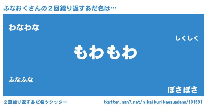 | 男性向けラノベタイトル風あだ名 | 『ふなおくに滅ぼされるだけの簡単なお仕事です』 |
