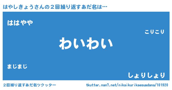 | 男性向けラノベタイトル風あだ名 | 『はやしきょうに滅ぼされるだけの簡単なお仕事です』 |