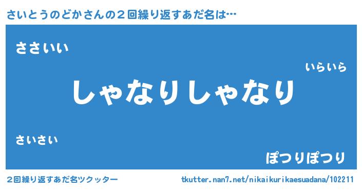 | 意味不明あだ名 | 『住所不定無職さいとうのどか(86歳)』 |