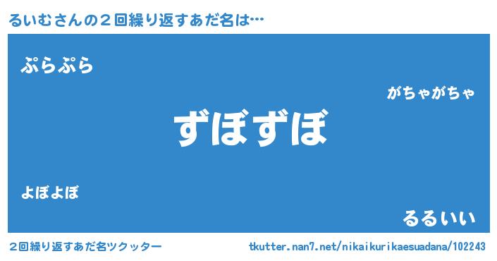 | 意味不明あだ名 | 『住所不定無職るいむ(59歳)』 |