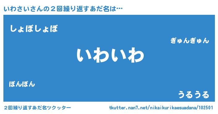 | 欧米人風あだ名 | 『マイケルいわさい』『ウサインいわさい』 |