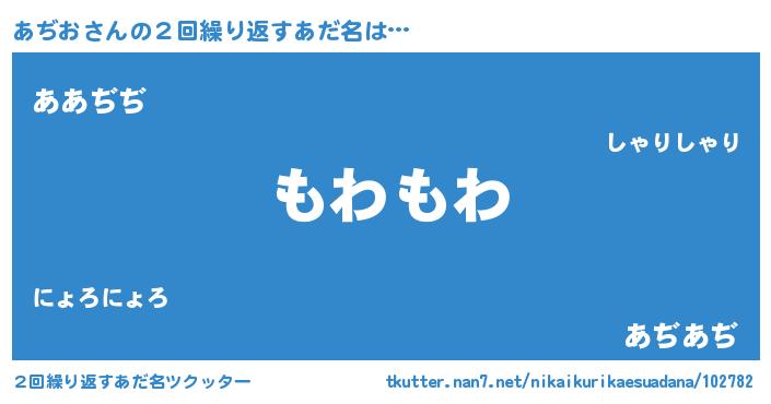 | 男性向けラノベタイトル風あだ名 | 『Re:あぢおから始める異世界生活』 |