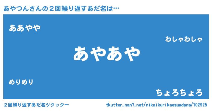 | 意味不明あだ名 | 『ペロリンあやつん』『自称あやつん』 |