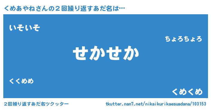 | 意味不明あだ名 | 『住所不定無職くめあやね(47歳)』 |
