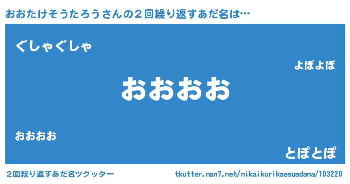 | ヘコむあだ名 | 『おおにー』『おおたけそうたろう(笑)』 |