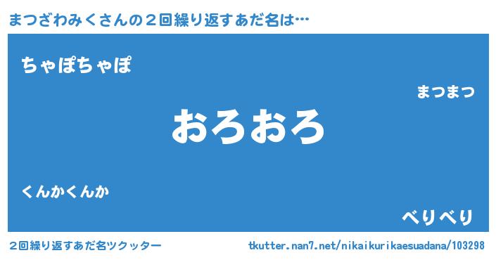 | ポケモン風あだ名 | 『ヒマツザワミク』『メロマッツ』 |