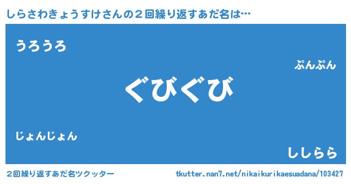 | 意味不明あだ名 | 『永久保存しらさわきょうすけ』 |