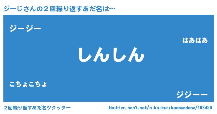 | 意味不明あだ名 | 『住所不定無職ジーじ(56歳)』 |