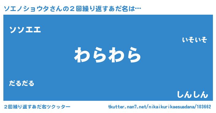 | 欧米人風あだ名 | 『トリンドルソエノショウタ』 |