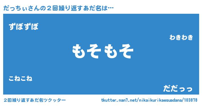 | 男性向けラノベタイトル風あだ名 | 『だっちぃに滅ぼされるだけの簡単なお仕事です』 |