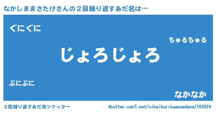 | 意味不明あだ名 | 『住所不定無職なかしままさたけ(53歳)』 |