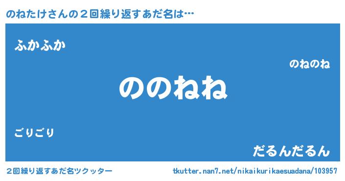 | 意味不明あだ名 | 『のねたけフォーエバー』『自称のねたけ』 |