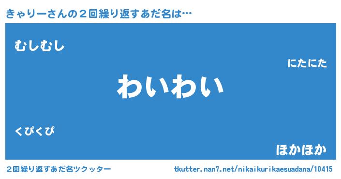 | 意味不明あだ名 | 『なめこ科きゃりー属』『自称きゃりー』 |