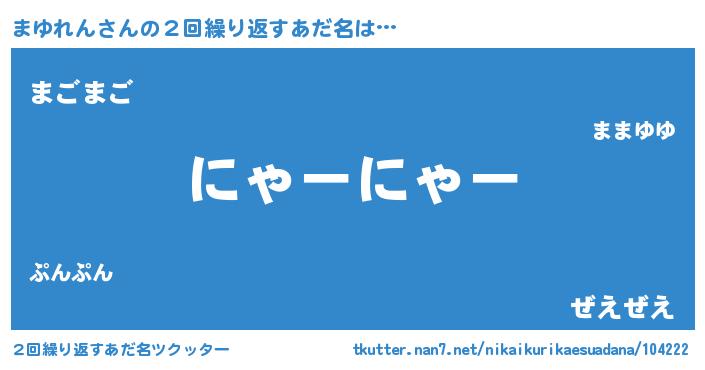 | ヒーロー風カッコイイあだ名 | 『銀牙騎士マユ』『ウルトラ戦士マユレン』 |