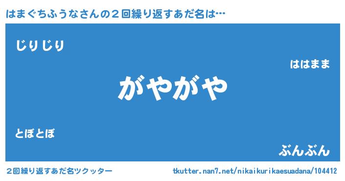 | ヘコむあだ名 | 『はまぐちふうな(小並感)』『豆乳』 |