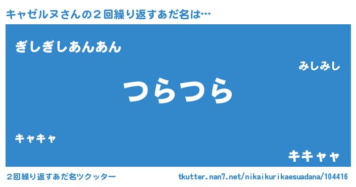 | ポケモン風あだ名 | 『メロキッャ』『ゼニキャ』 |