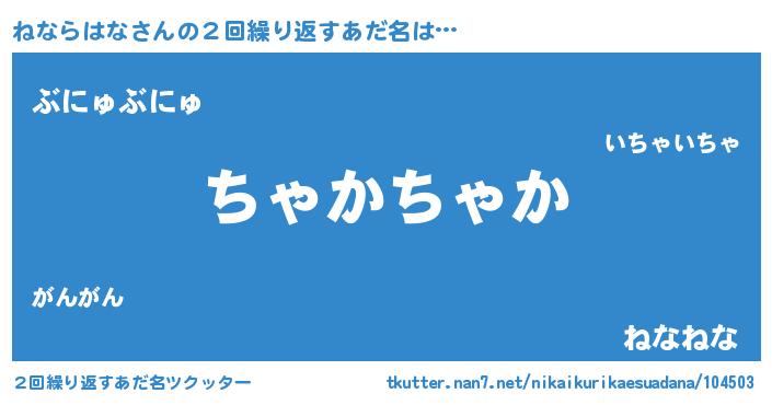 | 欧米人風あだ名 | 『ねならはな・ステッグマイヤー』 |