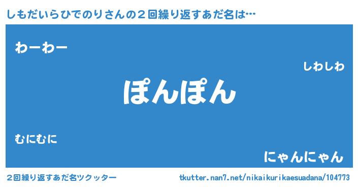 | ヘコむあだ名 | 『しもを』『しもだいらひでのり(小並感)』 |