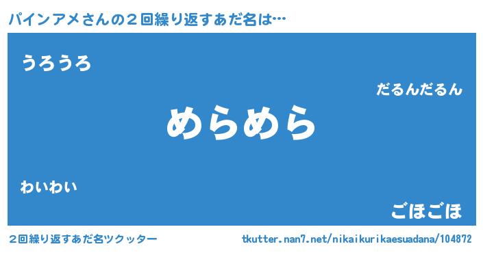 | 意味不明あだ名 | 『自称パインアメ』『永久保存パインアメ』 |