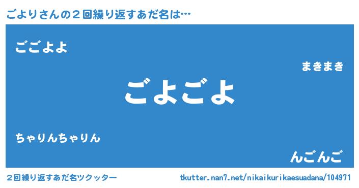 | ポケモン風あだ名 | 『ゴヨチュウ』『ゴヨリダネ』 |