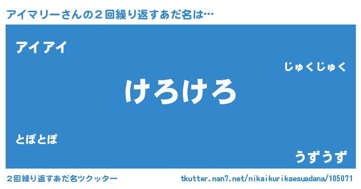 意味不明あだ名 | 『永久保存アイマリー』『自称アイマリー』 |