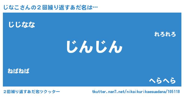 | 欧米人風あだ名 | 『ダレノガレじなこ』『じなこクリステル』 |