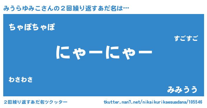 | 男性向けラノベタイトル風あだ名 | 『みうらゆみこの嫁は女の子じゃないと思った?』 |