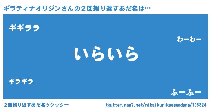 | ポケモン風あだ名 | 『ヒギラティナオリジン』『ギラテダネ』 |
