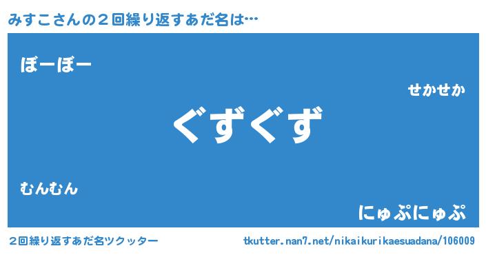 | 男性向けラノベタイトル風あだ名 | 『みすこという概念が存在しない退屈な世界 』 |